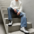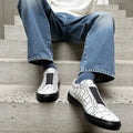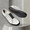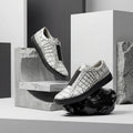 ホワイトクロコの存在感に、ブラックソールが全体を引き締める一足。