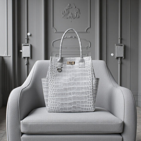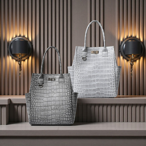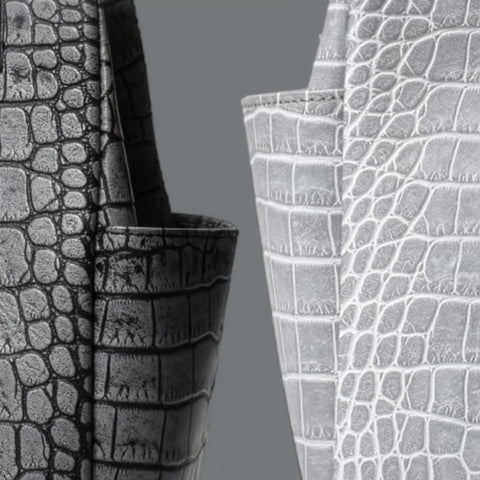 職人の手仕事によるクロコ型押しは、立体感と上品な艶を併せ持ち、耐久性にも優れています。