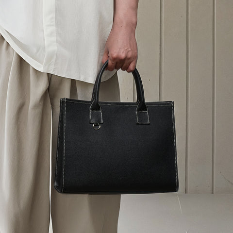 熟練職人が丁寧に仕立てた、極上角シボレザーが薫るBajoLugoのビジトート。しっとりと手に馴染み、見る者を惹きつける気品を放つ──まさに大人の余裕を物語る素材美。