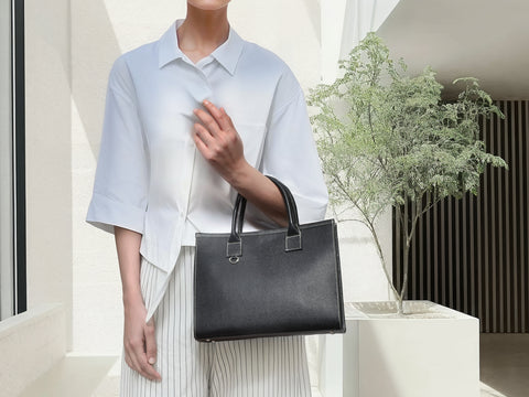 革厚をあえて 1.3 mm に設定し、しなやかさと自立性を両立。冬はコートの重厚さに負けず、夏はリネンの軽やかさと調和。オールシーズン手に取りたくなる軽量感が、装いの選択肢を広げます。