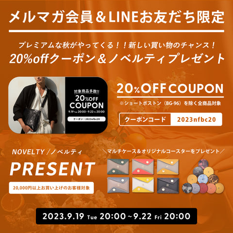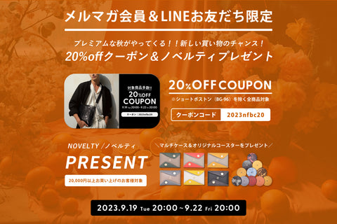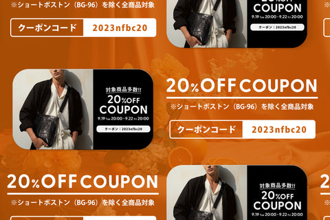ただいま予約商品と靴を除く即日発送の全商品で使える20%OFFクーポンを配布中!