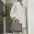 The square horizontal form fits naturally into both business and casual wear. It is a masterpiece that adds a sophisticated feel to a sophisticated style. It can securely store not only A4 documents and laptops , but also everyday must-have items. Valuables can be stored in the zippered pocket .