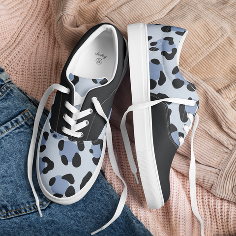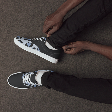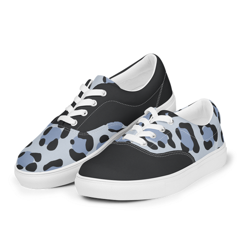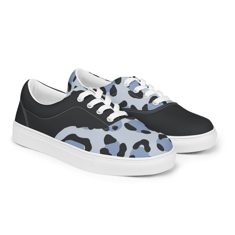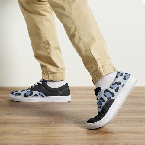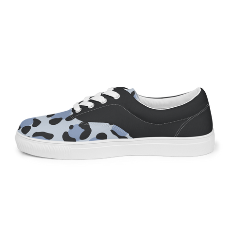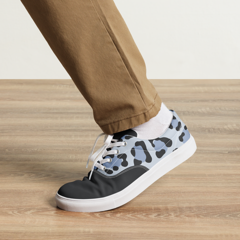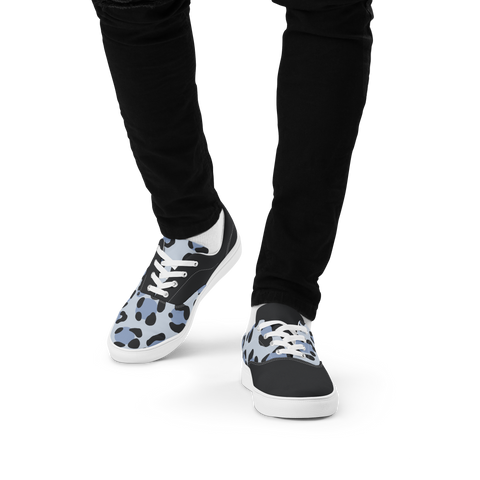 [男款] 不對稱繫帶帆布運動鞋 (2379327) 藍色/豹紋