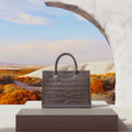 經典款Grand Tote Bag!忠實還原真材實料的天然國產皮革基底,搭配大號鱷魚壓花皮革,散發出令人震撼的氣息。幹練時尚的設計魅力十足,同時又不失奢華感。